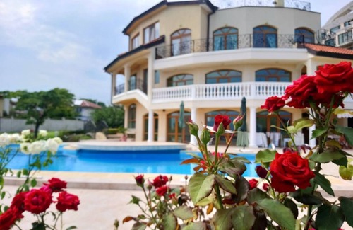 "Розариум"е Слънчев дом с отлична морска панорама в близост ,до най чистите и посещавани плажове край Варна.Разполага с 4 спални,4 бани с 5 тоалетни,има 4 вани,1 хидромасажна вана,хидромасажен душ,сауна,фитнес салон и тенис маса .Къщата е климатизирана за всички сезони и е оборудвана е с всички необходими електроуреди,за комфортна почивка.В летният сезон на разположение на гостите е и плувен външен басейн с морска панорама.Разполага със собствен паркинг за 4 автомобила.