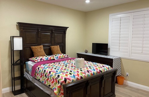 这处时尚房源适合单人或双人居住!全新家具!queen size 双人床.你将有自己独立卧室和卫生间 将会和房客共享厨房 后院 客厅.离赌场大道.飞机场…10-30分钟.close to 娱乐场所:绿谷赌场 步行可去church 方圆5mile 有诸多公园.适合散步.运动.聊天..附近还有旅游景区:lake mead fishing area.Arizona hot Spring..胡弗水坝…hiking place…