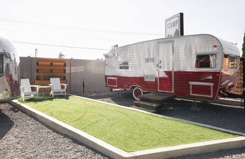 Dogs 50 pounds or smaller are welcome to stay at The Camp, with a maximum of 2 dogs equaling 50 pounds per pet family. Dogs will only be allowed in pet friendly accommodations and must be included when making a reservation. A non-refundable pet fee of $50.00 per animal will be charged at the time of booking for our guests staying in our pet friendly Vintage Trailers. Dogs must always be kept on a leash 6 feet or shorter within the premises of The Camp and are not to be left unattended in the trailer. No building of pet pens or fencing in areas at your site. No tying of your pet to any structure or tree with in The Camp. A small off lease area is available to guest to use during their stay. Guests must accompany and stay with their dog at all time while in the dog park. Guest are responsible to “clean up” after their dog and all dog waist is to be properly disposed of in the dog receptacles.