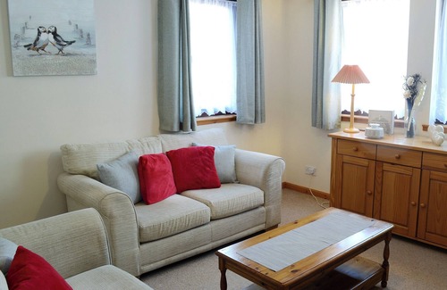 The cottage has an attractive good-sized living room with welcoming soft furnishings and there is a small but well-equipped kitchen with drop leaf table and a prettily presented double bedroom. The petite garden at the rear of the property is a real delight. Accessed through the gate immediately to the left of the front door, this sheltered suntrap garden has a small lawn with outside dining table and chairs, surrounded by tubs and flowering plants. There is a shed available for bikes and other holiday equipment.