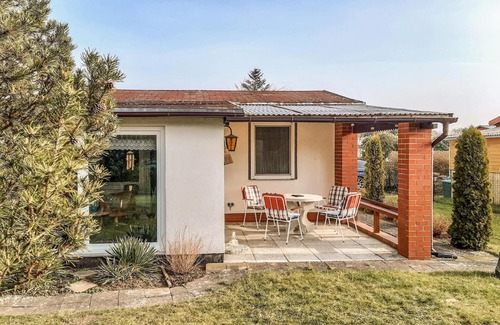 Spend a peaceful break in this simple but cosy holiday home in a small complex. It is ideal for couples or small families looking to relax in natural surroundings. Make yourself comfortable in the living area with its maritime flair and lovingly decorated details. Use the sofa for relaxing hours or curl up with a book. The dining area by the window is ideal for shared meals or games evenings.