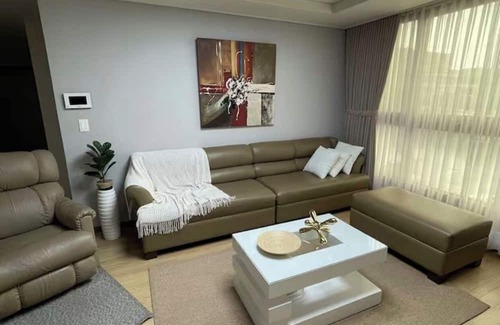 Enjoy your stay inside Clark Freeport Zone in this spacious & peaceful 2 Bedroom Condo with a view of the man-made lake and lushious green mountains where you can jog or just walk around.