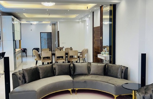 Stylish 3-bedroom condo with two terrace & two very modern wet and dry kitchen in Bashundhara R/S , Dhaka's top residential area. Surrounded by luxurious commodity in Dhaka. Enjoy a modern living space with velvet seating, a sleek marble dining table, and a serene indoor garden courtyard. Thoughtfully designed with luxury finishes, perfect for families, business travelers, or small groups.