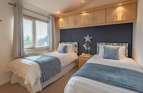 The Sunrise View Lodge is the perfect escape for up to 4 guests. A beautifully stylish interior opens out onto your own private decking and high-quality seating area allowing you to take in the breath-taking views across the Clwydian Hills in absolute comfort. The living area is open plan and includes comfortable sofa and chairs which face the large Flatscreen Smart TV, perfect for those cosy nights in after a day out exploring. The Lodge boasts a modern kitchen with built in key features of washing machine, dishwasher, microwave and fridge/freezer. To the side of the kitchen there is an intimate dining area. The master bedroom has an en-suite WC. The twin bedroom boasts large sized single beds and ample storage space. The main bathroom features a bath with an overhead shower. Added extras include towels, a welcome pack and and private parking for one car at the entrance of the accommodation, extra parking is available throughout the park. Pets not accepted in this accommodation.