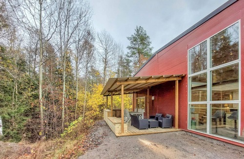 Spend your next holiday in this spectacular holiday apartment in Stojby, north of Växjö, right next to a fantastic fishing lake. Enjoy the charm of a converted industrial hall that offers modern amenities and an exciting room layout. The spacious communal areas and the large terrace with gas barbecue invite you to spend relaxing evenings overlooking the lake. Use the two canoes available to explore Helgasjön and enjoy the calm waters.