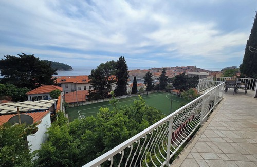 Spacious terrace with a beautiful view of the walls of the old town and the island of Lokrum. Three bedrooms and three bathrooms that fits 6 people in total. A short walking distance to the center of city. Perfect for family vacation or group of friends.