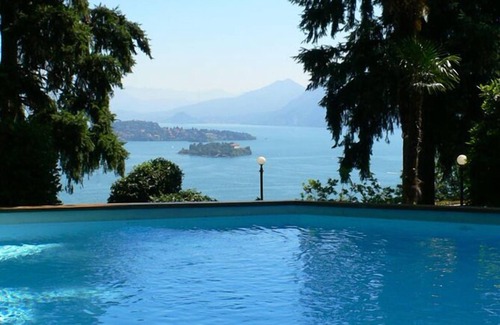 The Art Nouveau Villa "Villa Anna Isole Borromee" from 1908 is located about 1.9 km above Baveno and the beautiful lakeside promenade and the ship berth. Many excursion destinations can be reached with the passenger ferry. The train station of Baveno is just 2 km away. By train, B. the heart of Milan in about an hour. It is also a privileged and quiet panoramic position with a breathtaking view of the lake, the Borromean Islands and the surrounding mountains. During the careful restoration of the listed Art Nouveau villa, the structure of the old façade was preserved or restored. The result: a stylish villa with modern comfort, but the charm of the original facade with beautiful paintings. In the year 2017 the attractive 1-, 2-, 3- and 4-room apartments were last renovated and new, the style of the villa according to taste furnished. All pantry kitchens have dishwasher, 2-plate induction cooker and microwave. In addition, most apartments of the main house are characterized by a wonderful private outdoor area with terrace and garden or Balcony with gigantic lake, island and alpine views. On the same site is next to the Jugendstilvilla an 8-family house (apartments No. 21 to No. 24). All apartments are tastefully furnished and the well-equipped kitchenettes have a dishwasher, microwave, etc. In addition, most apartments are characterized by a beautiful private outdoor area with garden or Balcony and lake, island and alpine views. All apartments also have free Wi-Fi internet access and a communal outdoor area consisting of a sun terrace ("solarium") and a garden of approx. 1 000 m². Here is also the beautiful pool (about 10 m x 7 m, weather permitting opened from approx. Mid May to approx. End of September) with garden shower, sunbeds and umbrellas. Children also enjoy the small children's playground. A washing machine is available for a fee for general use. The apartments in the main house can be reached either via the stairwell or also comfortably by the elevator. You can park your car inside the property on two different parking lots. 2-room corner apartment No. 6 in the 1. 2-burner stove and microwave Bedroom with double bed (through-mattress) Living-dining room with pull-out couch for 2 persons, satellite TV, dream view and exit to the balcony. And exit to the terrace Friendly bathroom with shower and bidet Approx. 6 m² balcony with breathtaking view of the lake, the Borromean Islands and the surrounding mountains Approx. 15 m² terrace with a breathtaking view of the lake, the Borromean Islands and the surrounding mountains Approx. 1. 000 m² large communal garden with 10 m x 7 m large pool, sun terrace, large Liegewiese as well as panorama view of the lake, the Borromean islands and the surrounding mountains