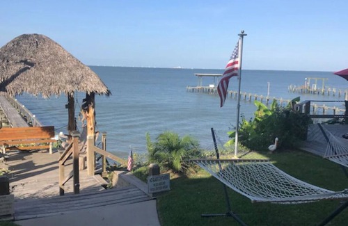 2B/1B sleeps 8 on waterfront property - 270' pier, pool, hot tubs & amenities is located in Bacliff. 2B/1B sleeps 8 on waterfront property - 270' pier, pool, hot tubs & amenities provides accommodation, featuring Oceanfront, Kitchen, Other, among other amenities. This House features Oceanfront, Kitchen, Other, to make your stay a comfortable one.