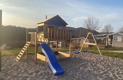 35m2 chalet, sleeps 6, with mountain views is located in Saint-Georges-de-Luzencon. 35m2 chalet, sleeps 6, with mountain views provides accommodation, featuring Fireplace/Heating, Child Friendly, Internet, among other amenities. This Ski Chalet features Fireplace/Heating, Child Friendly, Internet, to make your stay a comfortable one.