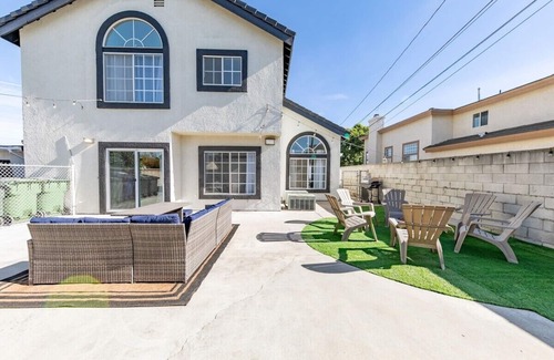 The perfect home away from home awaits with this exquisite 4 bedroom 3 bathroom centrally situated to visit all the sites of LA and Orange County. Upon entry, the foyer opens up to the game room and dining area. The open concept kitchen and family room creates the perfect space for gatherings. The kitchen is fully equipped for creating unforgettable feasts. The second floor is a restful retreat with a master bedroom that includes an immaculate en-suite bathroom, 2 additional bedrooms and 1 bathroom. The 4th bedroom is located on the 1st floor. There is also a full bathroom downstairs. The enclosed patio area is a place to relax and enjoy your morning cup of joe or evening wine. Then enjoy meaningful conversations while roasting marshmallows around the fire pit. The little ones will have plenty of entertainment with an air hockey table, skeeball, and board games. Whether you’re a family or group of friends looking for a peaceful retreat, this home will provide you with the perfect sanctuary.