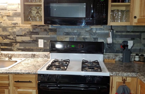 The Pine Place is a cozy home with a large yard and fire pit, conveniently located in a quiet neighborhood just one mile from Main St. in Crosby. Four bedrooms, fully-stocked kitchen, basement family room, 2 full bathrooms. A great deck with gas grill, lockable storage shed. Amenities galore. Full size Fridge with water and ice dispenser, Keurig coffee maker, gas range, dishwasher, microwave.