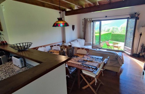 The house, fully furnished, has 3 bedrooms, 2 full bathrooms (one with shower and the other one with bathtub), living room with fireplace, an equipped kitchen, a garden and garden areas with panoramic mountain views.