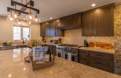 The bottom floor has a heated 2 car garage and a mud room for shoes and gear and entry to the home. The ground-level entrance near the garage opens into an office. For those who have a lingering business that needs to be addressed while on vacation, this room provides a real sanctuary from the activity of the house. It is secluded and quiet, with great WiFi. So work or play, the Avalanche House is the place to stay! It also has a queen bunk room, with room for 2 self-inflating twin beds available if needed in the closet, a full spacious bathroom, and a large laundry room. The main floor of the house has a well-appointed kitchen, bar, family room, cozy den with a fireplace, and a spacious queen bedroom with a full bath that serves as the common bathroom as well. The third floor has a master suite with fireplace, a king bed, full bathroom with double sinks, a huge walk in closet, and a much needed steam shower after a day of CB adventures! Views from the master and shower are spectacular! Also on this floor is a king bedroom with a full private bathroom and two more queen bedrooms that share a full bathroom in between them.