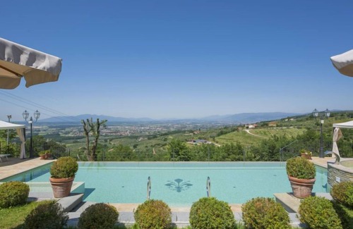 Large working farm 250 m a.s.l., renovated in 2016. 7 apartments in the property. 8.3 km from the centre of Vinci, 16 km from the centre of Pistoia, 50 km from the centre of Firenze, in an elevated position on top of a hill, 64 km from the sea, in the countryside. For shared use: property 5 ha (fenced), swimming pool (15 x 7 m, depth 140 cm, seasonal availability: 06.Apr. - 02.Nov.). WC in the pool area, outdoor shower, hot tub, garden furniture, children's playground (slide, swing). In the complex: table tennis, billiard table. Room cleaning daily on request (extra). Motor access to the house (100 m via unmade road). Parking on the premises. Grocery 1.4 km, supermarket 3 km, bus stop 1.2 km, railway station "Pistoia" 16 km, sandy beach "Versilia" 64 km, thermal baths "Montecatini Terme" 20 km. Golf course (18 hole) 14 km. Nearby attractions: San Miniato 22 km, Carmignano 22 km, Montecarlo 27 km, Collodi 31 km, San Casciano in Val di Pesa 45 km, Pisa 59 km. Please note: the owner lives on the same property. The photograph shows a typical example. Additional accommodations can be booked. Important information: maximum occupancy: 4 adults and 1 child (ren) up to 12 years.
