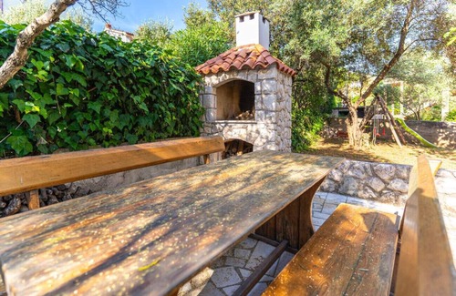 Experience unforgettable holiday days in this spacious apartment on the idyllic island of Cres. The 110 m² holiday apartment on the first floor of a quietly located house offers space for up to six people and is ideal for families, groups of friends, or anyone who appreciates comfort and proximity to nature.The apartment has four separate bedrooms, two modern bathrooms, a bright living and dining area, and a fully equipped kitchen. Two private balconies invite relaxation, one of them with a magnificent sea view. Air conditioning, WiFi, satellite TV, and a private washing machine provide additional comfort. A baby bed is available upon request, pets are welcome, and a free private parking space is available directly at the house.Active guests can explore the surroundings with the provided bicycles, while the well-maintained garden with shady spots and the communal barbecue area enable sociable evenings. The nearest gravel beach is located just around 100 metres away, a supermarket and a restaurant can be reached in about 50 metres, and the centre of the charming coastal town of Cres is quickly accessible on foot.This apartment is the perfect choice for families, couples, active holidaymakers or those seeking relaxation. The hosts also live in the house and are happy to help with any questions - with very good language skills in Croatian, English and Slovenian as well as good German skills. Enjoy your dream holiday on Cres in one of the most beautiful corners of Croatia.