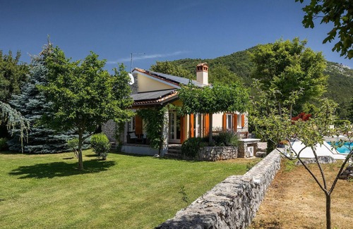 This villa is the last house in a small authentic village called Brest pod Uckom. It is located in a protected nature park with beautiful nature all around and uninterrupted views of the valley and the surrounding mountains. You will enjoy the peace and privacy. It is ideal for cycling and hiking on marked cycling and hiking trails. The Istrian beaches of the east coast are a short drive away as is the entire Istrian peninsula with its excellent road system. The nearest town is Rijeka.