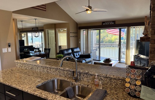 New property listing from Premier Host in Indian Pointe Condominiums. Completely updated 2 bedroom/ 2 full bath condo with vaulted ceilings. Clean, comfortable king beds and living spaces. Relax and enjoy sunny Lake of the Ozarks from the open lakeside top-level deck or extend the retractable awning for shade. Enjoy a front-row seat for gorgeous sunsets and watch the boats go by at the 17mm. Close to shopping and fine restaurants or cook meals in the fully stocked kitchen. Access to 3 pools, tennis and basketball courts and clubhouse. Boat slips are also available for rent in the marina. Your vacation is waiting!