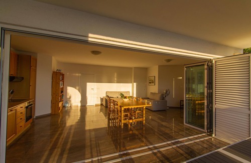 The kitchen is integrated in the living room and has a dishwasher (Miele), induction stove (Siemens) and a very large refrigerator with separate freezer area (Liebherr). Even otherwise, the equipment with all the usual kitchen appliances is more than complete.