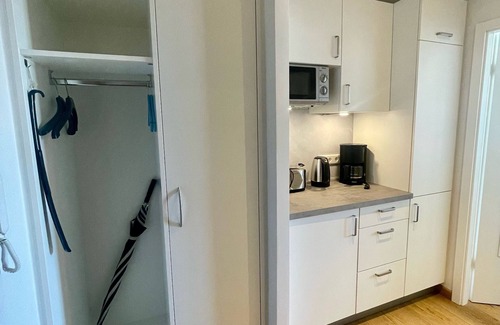 Both apartments were renovated at the beginning of 2024. The Strandkoje apartment (3 people) is on the 4th floor, the Strandblick apartment (2 people) with excellent views of the sea is on the 6th floor of the house. There is an elevator available in the house.