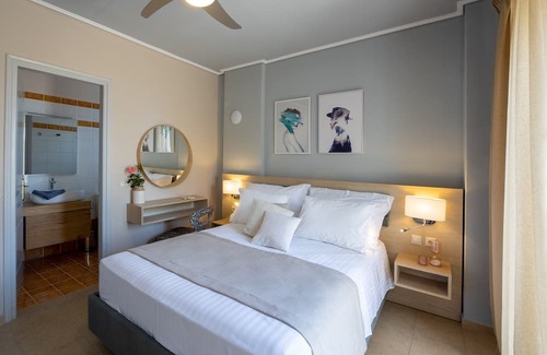 Accommodating up to four guests, the Gold Villa features two cozy bedrooms and one or two lavishly appointed bathrooms. Guests will be captivated by the elegant wooden fixtures adorning the fully-equipped kitchen, while the spacious living area and indoor/outdoor dining spaces provide the perfect setting for enjoying meals against the backdrop of the Peloponnesian skies.