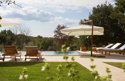 Dreamlike luxury villa amidst a green setting, on 8.000 sqm grounds with pool and beautifully laid out garden surrounded by woods and vineyards. The clear air and the bird song at dawn in combination with highest comfort make your holiday become a fairy tale. Only 6 km to Porec with its beaches, restaurants and rich cultural heritage.