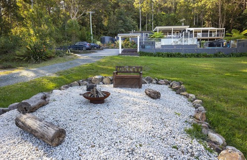 This newly renovated house features open plan kitchen, dining and living areas perfect for families to relax and enjoy time together. The home opens up on to a huge outdoor dining and seating area with BBQ and sweeping views of the forested property. The newest "wing" of the house includes two large queen rooms with ensuites. Both rooms open up onto a private verandah.