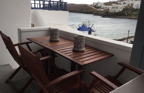 A fully equipped and nicely decorated 32 sq m apartment. The house - studio, in a blue and white color and polygonal Karystos slates in the floor, has 1 bedroom, a living space, a kitchen, a bathroom and a balcony. I am accessible round-the-clock to the guests to assist throughout your stay. If you have any further questions please feel free to contact me. The house is next to Loutra beach and close to Schinari beach (10 min. walking distance). Super markets, grocery stores, bakery store, bars and restaurants are also in a walking distance. Loutra (the Baths) have been inhabited since ancient times due to the existence of drinking water and the natural harbor. Considered the seaport of Hora just 5 km from it and 11 km from the port of Merichas. Loutra (the Baths) are among the most famous places of spa tourism in the Cyclades, but also throughout Greece. The Spas of Kythnos include a spa unit with hydro massage & 14 baths all belonging to the EOT (The Hellenic Tourism Organization). Swimming outside the premises EOT is possible specifically at the point the waters of the springs flows into a natural sea pool flowing into the sea where hot waters are joined by the cool sea. The thermal waters of the Baths which gush out of the source into the sea are very warm and some areas are characterized extremely hot. There are two main sources with the characteristics of mineral waters: the source of Kakavos with mainly ferrous lightly radioactive water with temperature 52 ° C and the source of Saint Anargyri.
