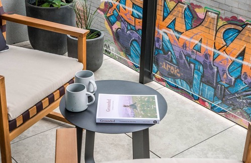 Axel's The Faircroft is an elevated ground floor apartment boasting 2 bedrooms and 2 bathrooms, sleeping 4. Enjoy high-end fittings and fixtures, a contemporary open design and all the mod cons, including ducted heating and cooling, high-end appliances and Netflix. Unwind in dual living spaces, on the generous covered balcony or central courtyard area.
