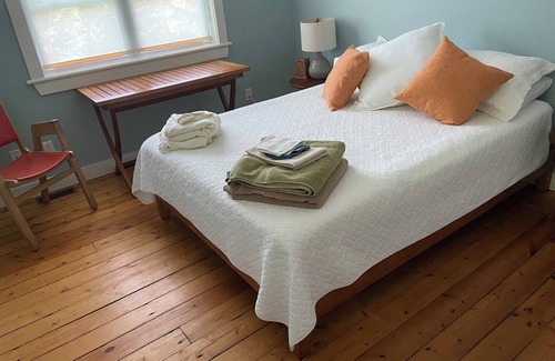 The whole house is yours for your stay. We have a private fenced garden, and large treed lot. Our modern wood-burning stove takes the chill off if you visit in the shoulder season (we also have central heating).