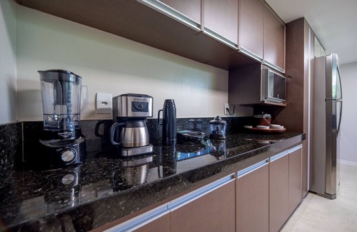 The living room is spacious, the kitchen is fully equipped with everything you need to serve you and your group, with top-of-the-line appliances, a gourmet area with a private barbecue, private pool, sunbathing area, fiber optic Wi-Fi