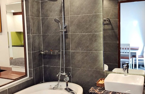 Phòng tắm khác với những phòng thông thường, VIP chúng tôi có BỒN TẮM NẰM với thiết bị tốt nhất, phòng tắm đầy đủ các loại khăn, máy sấy tóc, chậu rửa vệ sinh (bidet) và vòi sen.