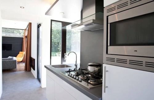 This detached and modern holiday home is located in the nature-rich holiday park Resort Buitenhuizen. It is located in the middle of the Spaarnwoude recreation area and next to Spaarnwoude Golf Course. The North Sea beach is 13 km away and the pleasant capital of Amsterdam is 25 km away. The ground-floor holiday home is built in an L-shape. It is furnished in a modern style and wonderfully light thanks to the large windows and raised ceilings. In the living room you will find a TV and a cosy decorative fireplace. The open plan kitchen has a dishwasher and a microwave. There are three bedrooms, one with a double bed and two with two single beds that can either be left separate or pushed together to make double bed. There are two luxurious bathrooms, each with a walk-in shower and toilet. Enjoy time outdoors in the garden furnished with a spacious terrace and garden furniture. There is parking for one car directly at the holiday home. At the Buitenhuizen holiday park resort, various holiday homes, tiny houses and chalets can be booked for two to six people.