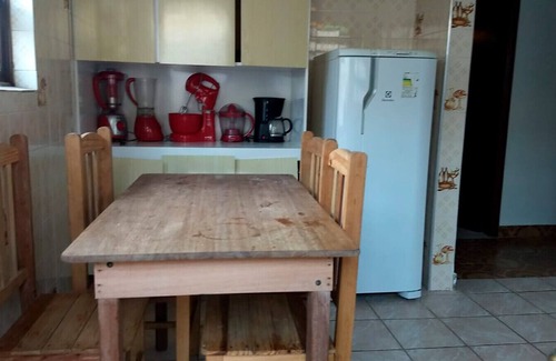 - Cozinha equipada com fogão, geladeira, micro-ondas, liquidificador e batedeira