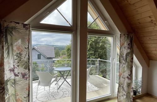 Herdwangen-Schönach 12 km from Überlingen: Modern, cosy single-family house "Casa Luna". On the outskirts, 400 m from the centre of Herdwangen-Schönach, 4 km from the centre of Herdwangen, in a sunny position on a slope, in the residential district, 12 km from the lake. Private: property 400 m2. In the house: washing machine (extra). Parking. Shop 200 m, grocery 4 km, supermarket 10 km, outdoor swimming pool 12 km, bathing lake "Illmensee" 16 km, lake Bodensee 12 km. Golf course 10 km, cycle lane 200 m. Well-known lakes can easily be reached: Bodensee 12 km.