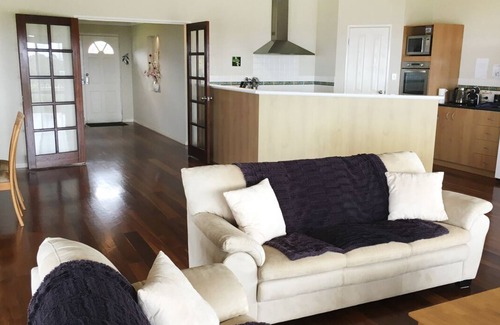 All five bedrooms are comfortable and spacious with 2 lovely bathrooms. The large master King bedroom has a ensuite with spa bath. There is another Queen bedroom at the other end of the house with semi-ensuite plus three other bedrooms - one with a queen, one with a single & another with 2 single beds.