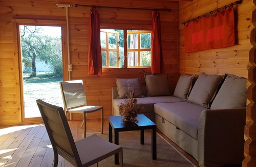 Chalet for 4 people rentable by the week (from Saturday to Saturday 725Euro (s) / week.), Equipped kitchen, free parking, reversible air conditioning, 30 meters from the beach in the heart of the family and peaceful campsite of Soled'oru.