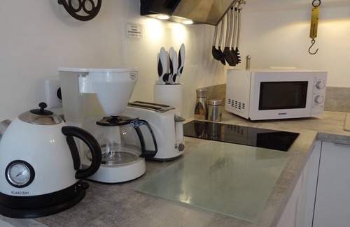 - Built-in kitchen: 2 ceramic hobs + extractor fan + mini fridge, microwave oven, plunging mixer, raclette service for 2 people, crockery.