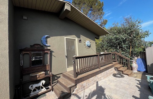Stay comfortably in Malibu at this private adorable 1-bedroom cottage located on a 4 acre horse property. The cozy bedroom features a queen bed, perfect for a good night's sleep. You'll find a charming den with a sofa bed for extra guests. The bathroom is equipped with a bidet shower and bathtub for a relaxing soak. A large private deck over looks a beautiful open view with a glimpse of the ocean in the distance. A short walk across the road to miles of public beach. Hiking trails are within a half mile to the tallest waterfall in the Santa Monica Mountains. A world class restaurant is located just across the PCH. Restaurants and shopping are just two miles from the cottage. Enjoy amenities like WiFi, a hair dryer, and a washing machine during your stay. Fall in love with Malibu and enjoy the magic it has to offer.