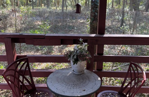 Escape to this lovely cottage in picturesque Dunnellon. This cozy retreat features 1 bedroom with a memory foam queen bed, a charming living room with a futon, and a bathroom stocked with a hair dryer. Guests can also enjoy amenities like a fitness room, trails in backyard, iron, heating, and AC. Horses and trailers welcome. RVs as well. We hope you enjoy what our place and Dunnellon has to offer. Close to fresh springs for kayaking and tubing. Close to downtown Ocala.