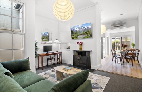 This elegant 2-bedroom terrace house in Cremorne offers comfort and convenience. Boasting a spacious design, outdoor seating, and self-check-in, it offers a seamless stay making it perfect for small families or business travellers. Situated close to Melbourne's lively city centre, it provides easy access to parks, restaurants, and cultural attractions. Enjoy a fully equipped kitchen, high-speed Wi-Fi, and a chic living area complete with Netflix for your entertainment.