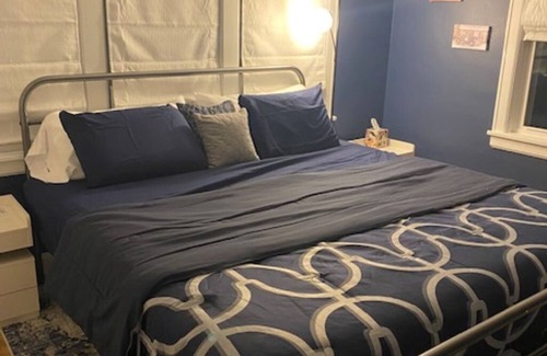 Stay comfortably in McPherson at this 2-bedroom house. This adorable property features 1 king bed and 1 queen bed, and is conveniently located close to colleges, downtown, and parks. This home has a basement family room with a dart board and fully setup poker table, and television. Also includes a private back yard with grill and dining set. This home is newly remodeled, with brand new furnishings. It combines the old home charm with new style!