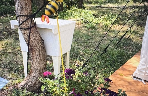 Escape to the soothing sounds of the River in our charming camping retreat situated along 2,200 feet of Pine River frontage on 23-acres just outside of Bayfield (near Durango) where the trout are abundant and the fly fishing is great! Nestled right on the river's edge, our heavy-duty canvas tent offers the perfect blend of outdoor adventure and comfort. Forget roughing it – inside, you'll find a plush queen-size foam bed, complete with nightstands and solar lights, ensuring a restful night's sleep to the sounds of the river. Available from May 15 - October 15.