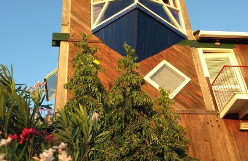 La casa tiene también una ducha al aire libre, en la entrada, cerca del caminito de madera.