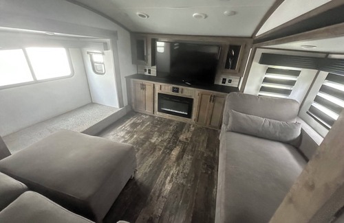 Stay comfortably in Milton at this delightful 1-bedroom recreational vehicle. The cozy space features a queen bed, 1.5 bathrooms with shower, AC, and heating. Enjoy a quaint and awesome stay in this unique accommodation on a working horse farm. Feel free to reach out to us during your stay - we're happy to suggest local spots to check out.