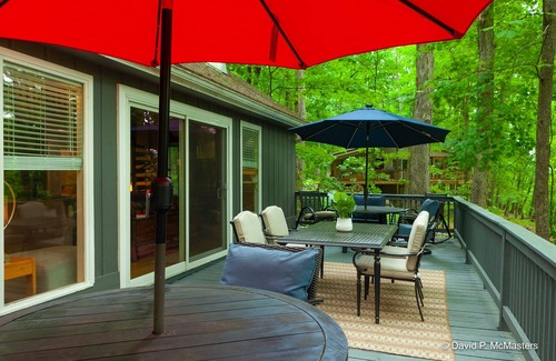 Cozy cottage in the woods with community POOL and HOT TUB. We aim to please. Cleanliness, disinfectants, sanitizing are standard operating procedure for Treetop Cottage. Hiking trails, near restaurants and boating. 4 bedrooms; 1 w/ king bed on the first floor, 1 w/3 single beds on the second floor, 2 w/ queen bed and 1 single bed one on the first floor and another on the second floor. LOTS OF BEDS! Large deck and screened porch. Quiet, Peaceful, Wooded Setting. LOTS OF BIRD SONGS. Close to restaurants, brewery, lake, Cacapon State Park and Easy drive to downtown Berkeley Springs. Special rates in May.