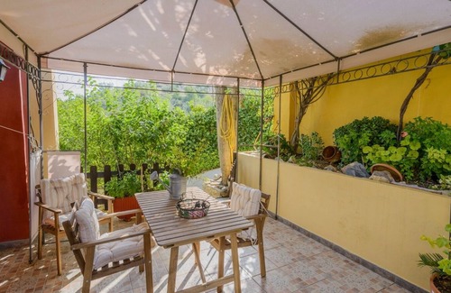 The two-storey house's rustic decoration can be found in all the six bedrooms. One of them is equipped with two twin beds, whereas the other five all rely on a double bed each. Besides, two of the double bedrooms are also provided with an ensuite with a shower each; both are located on the first floor. One more bathroom with shower is available for the other guests on the ground floor, where the other four bedrooms are also located. On this level, you and your family will have the chance of engaging in long evenings of talks by the fireplace of the dining-living room, or as you prepare delicious specialities in the independent kitchen.