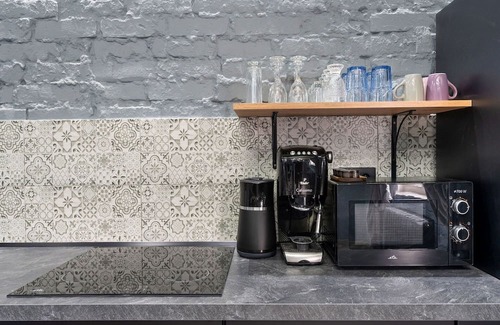 Your comfort is ensured with a range of modern amenities including television, microwave, heat, and a fully equipped kitchen featuring a ceramic glass hob with 4 hotplates, an oven, kettle, and electric coffee machine. The property accommodates up to 4 guests and provides complimentary WiFi internet access throughout your stay.