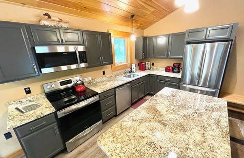 Discover the perfect blend of comfort and functionality in this home, showcasing a spacious great room with a combined living, dining, and kitchen area, complemented by a wood-burning fireplace. Additional highlights include a lower-level family room, 4 generously sized bedrooms (2 on the main level and 2 on the lower level), 2 full baths, in-unit laundry, and a private driveway. Each bedroom is furnished with a queen bed, dresser, and TV for added convenience and enjoyment.