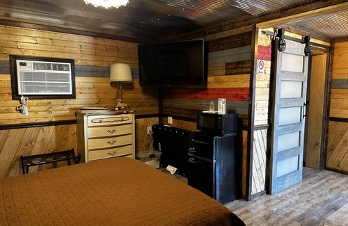 Located on beautiful Horseshoe Lake, these cabins are the perfect getaway. Sit on the enclosed shared front porch and enjoy a cup of coffee as you watch the wildlife on the lake. Horseshoe Bar & Grill is located on the other side of the lake where you can grab some great food and drinks. Only a few miles away. This is ONE building, with TWO SEPARATE ROOMS/CABINS. The Labrador Room is a one queen bed cabin (sleeps 2) while the Mallard Room has two full beds (sleeps 4).