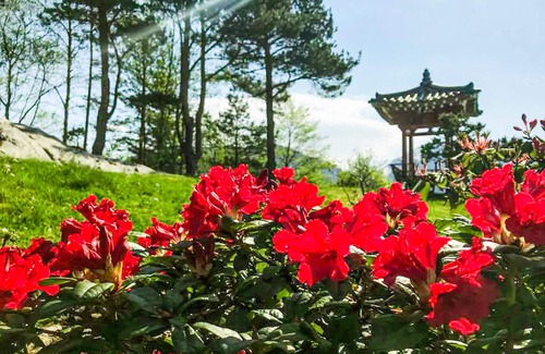 There are beautiful walking trails with great planting right outside the door, as well as a large fish pond and a Korean-style pavilion with spectacular views of the fjord and nearby mountains. A short path leads to the fjord for those who want to try their fishing luck or take a dip.